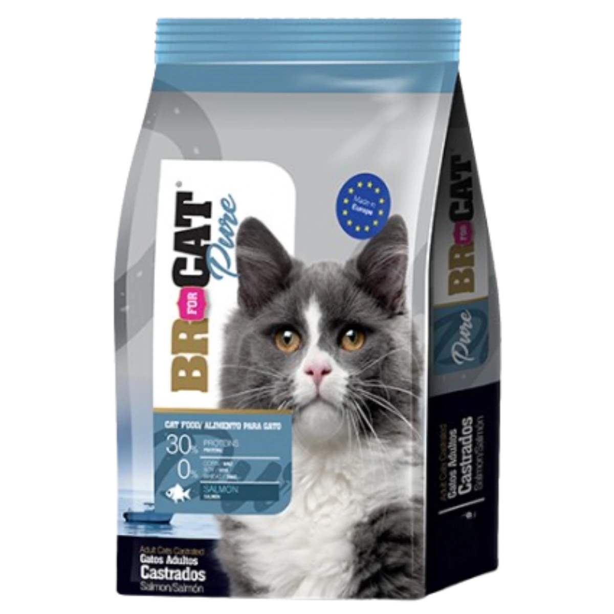 BR For Cat Pure Gato Adulto Castrado Salmón 3 Kg – Control de peso con el sabor irresistible del salmón y protección celular avanzada para el bienestar de tu gato castrado.