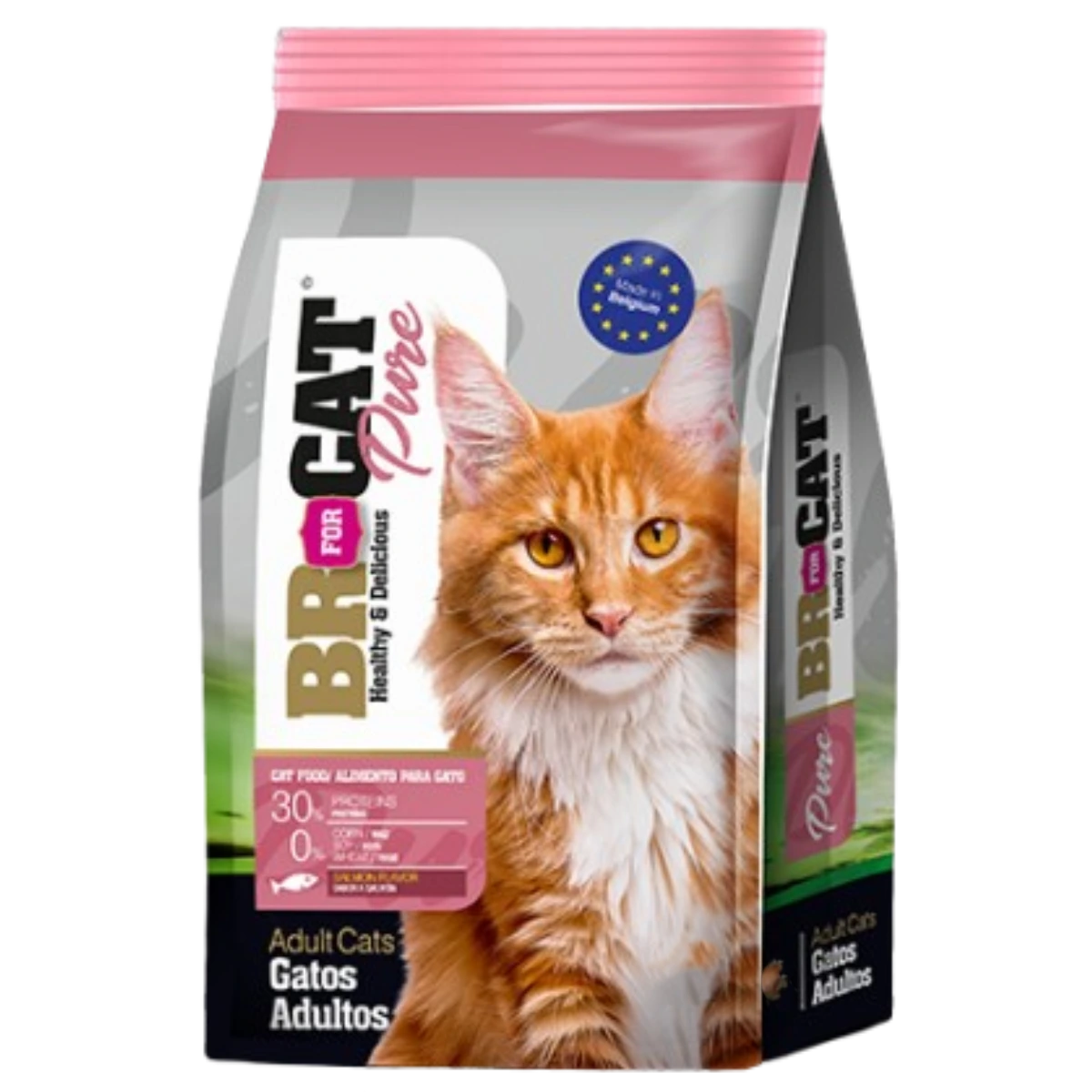 BR For Cat Pure Gato Adulto Salmón 3 Kg – Sabor gourmet con el poder del salmón para una piel radiante y una protección antioxidante superior en gatos adultos.