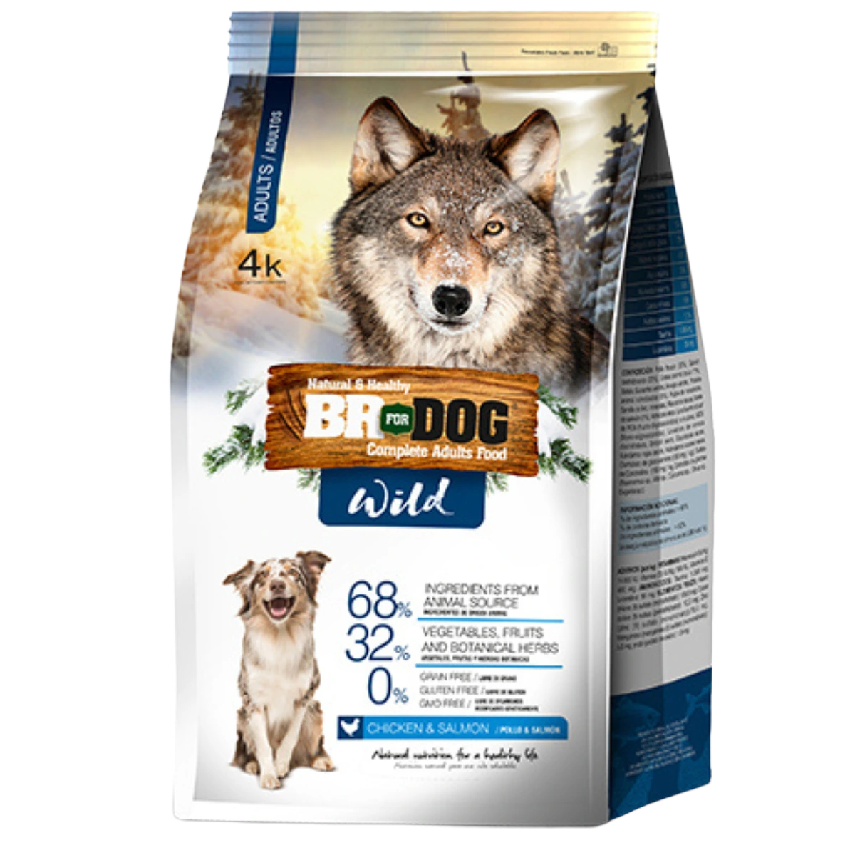 BR For Dog Wild Perro Adulto Pollo y Salmón 4 Kg – Nutrición ancestral libre de granos con pollo y salmón para una vitalidad superior y defensas fuertes.