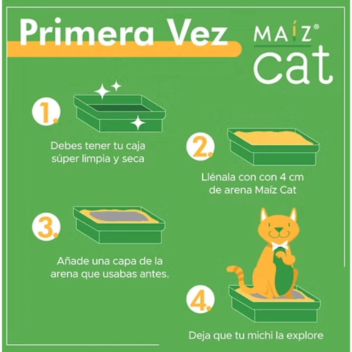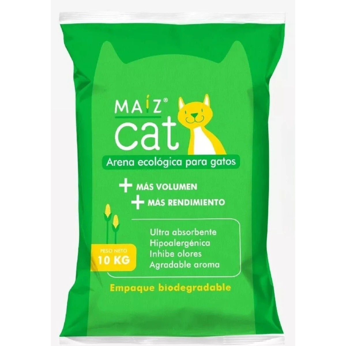 Arena ecológica de maíz: rinde el doble, controla olores, hipoalergénica, suave con la piel, ultra absorbente y con aroma agradable.